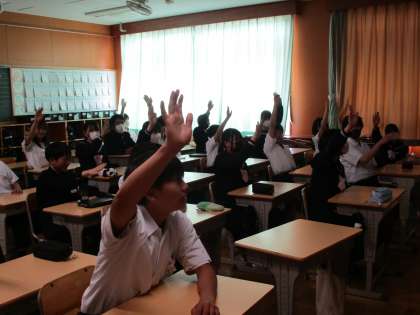 教室から多くの生徒が質問や意見が出て、それに対して執行部や各委員長が答弁をするという形で行われ、全校生徒で藤岡南中をよりよくしていこうという姿勢が見られました。