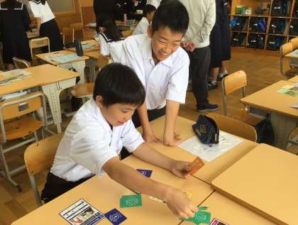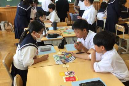 本日は、講師としてあいちSDGsネットワークの森山智香子さまが来校され、SDGsの目標について話を聞いたり、SDGsカードゲームを各学級で行って実践的に学んだりしました。