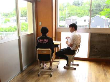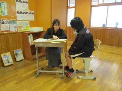 進路、学習、その他の生活について、担任がクラスの生徒一人一人と話をしています。
