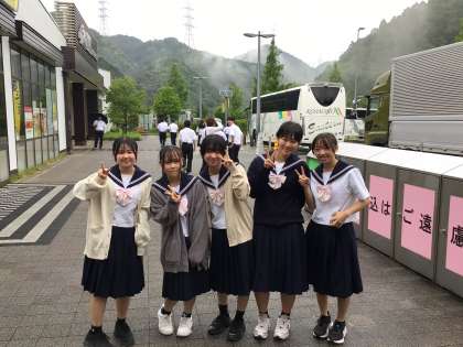 ただいま、掛川PAでトイレ休憩をしました。雨模様ですが、みんな元気いっぱいです!