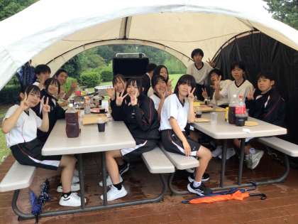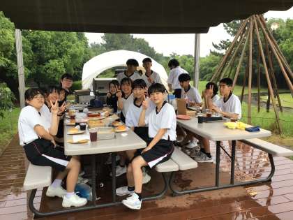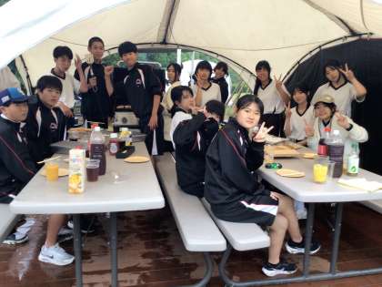 夕食の様子です。雨模様ですが、笑顔で夕食をいただいています!