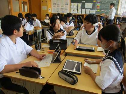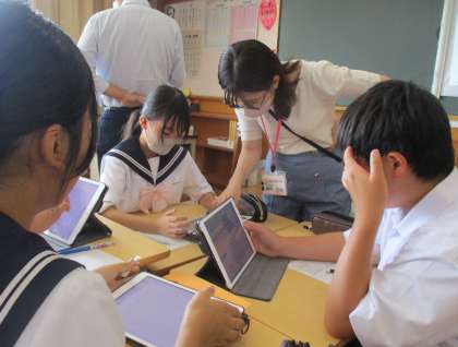 教師の授業力向上、生徒の主体的に授業に参加する意識を高めるために、教師同士で授業を見合っています。