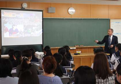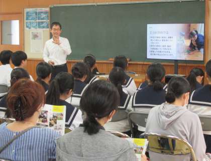 授業参観が行われる前の午前中に、高校説明会を実施しました。