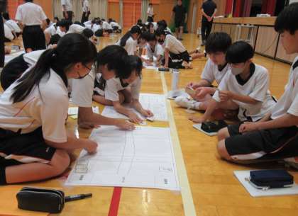 活動中は、どの班からも活発に話し合う声が聞こえてきました。予想外のトラブルに頭を抱える班もありましたが、避難所運営の難しさが体験を通してよく分かる時間になりました。