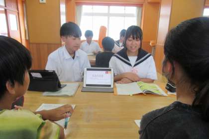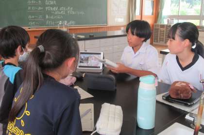 中学生にとっては、これまでの学びをまとめたパワーポイントを生かしながら相手にその魅力が伝わるようにプレゼン発表をしたり、プレゼンの内容やその仕方について小学生に助言したりする機会となりました。