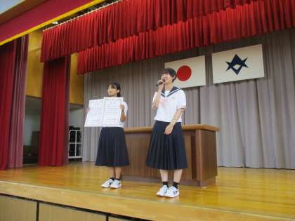 夏休み明けの気持ちを引き締め、前期後半の学校生活への気持ちを高めるために全校集会を行ないました。
