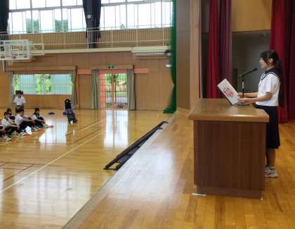 式の中では、3年生の代表として後期生徒会長より話がありました。一人一人が自分に変革を起こし、拍手で満ち溢れる温かい学校を全校のみんなでつくり、ハッピーエンドで1年を終えられる後期にしてきたいという思いが、全校生徒に向けて力強く語られました。