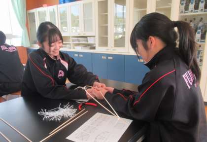 実際に橋の模型を組み立てながら、建築物の強度について学ぶことができました。