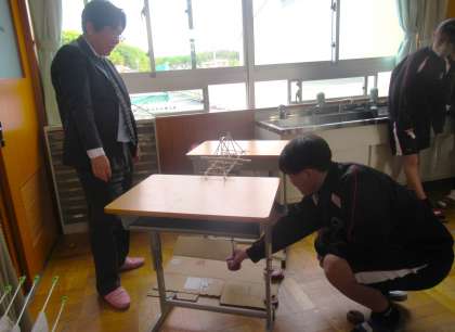 3年生の理科「力のはたらき方」では、豊田工業高等専門学校建築学科の先生をお招きして授業を行いました。