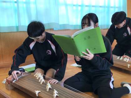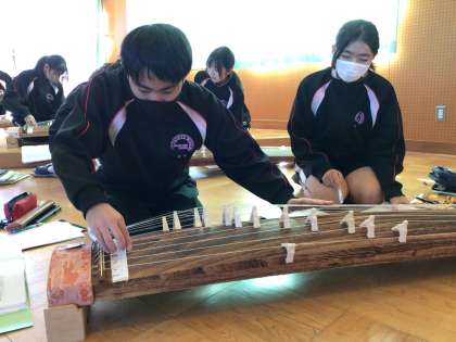 3年生の音楽の授業では、箏を演奏しています。
