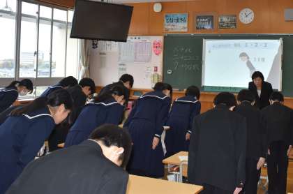 1年生では、総合的な学習の時間で「キャリア教育」を行っています。「わたしたちはどう生きるか 〜働き方から生き方へ〜」をテーマに、今の自分の考え方・生き方について客観的に捉える活動や、働く上で必要なマナーを学ぶ活動を行っていきます。