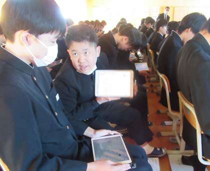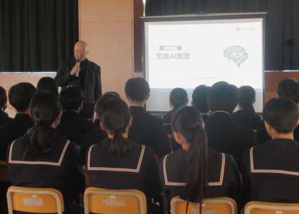 3年生では、サイエンス塾出前授業でソフトバンク株式会社より講師をお招きして生成AI教室を実施しました。
