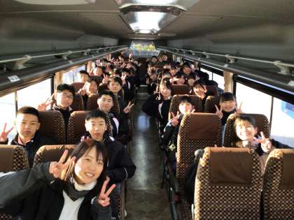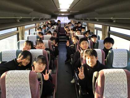 バスに乗り込み、茶臼山高原スキー場に向けて出発します。