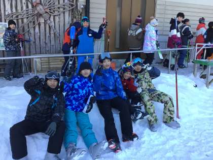 スキー研修、閉校式を終え、バスで旭高原自然の家に向かいます。