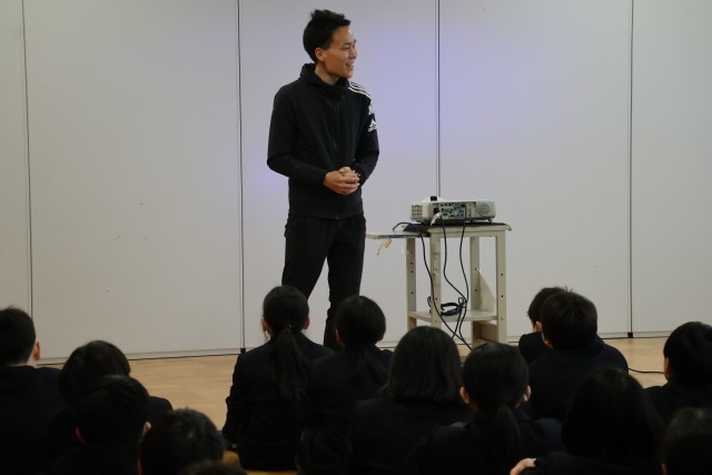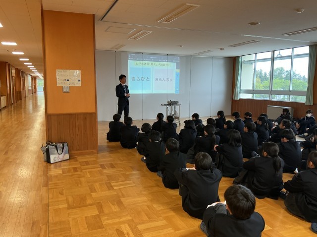 3時間目に学年集会を行いました。学年スローガンの発表や教員紹介が行われました。真剣なまなざしで話を聞く姿が印象的でした。