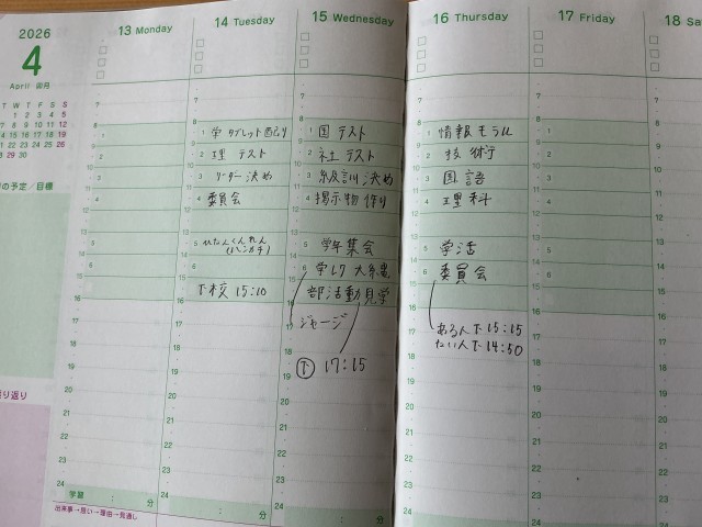 4月13日(月)今未来手帳の記入