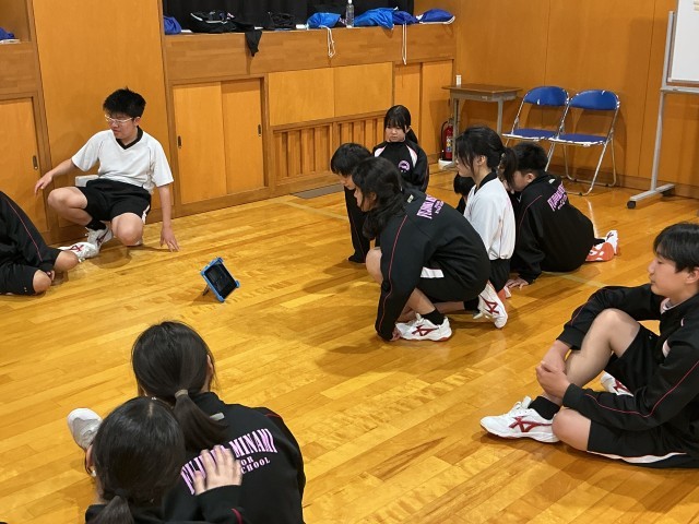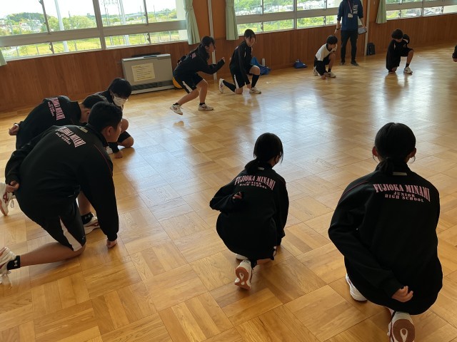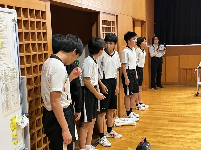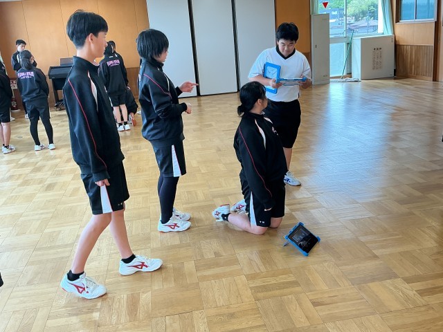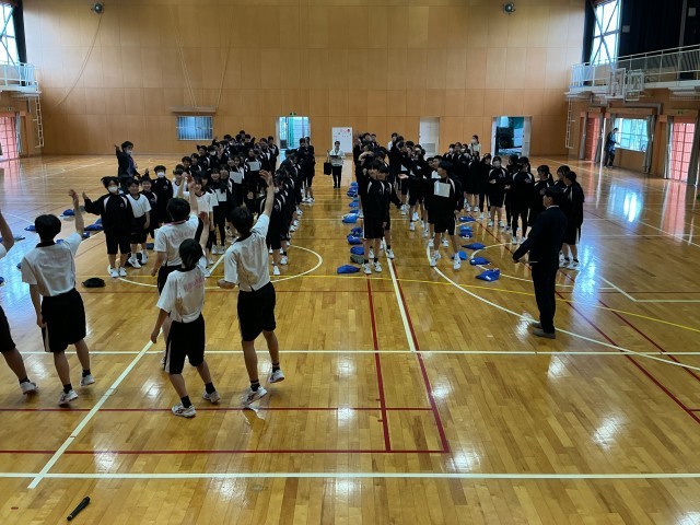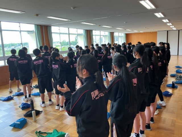 結団式、各団の様子です。縦割りのA~C団に分かれて、応援や桜の舞の練習をしました。3年生が優しく教える姿が見られました。