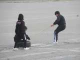 3年生理科の単元「エネルギーと仕事」の授業では、グラウンドでタイヤを引っ張り、...