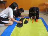 昼放課の時間には、各学級の体育祭制作長を中心として、団旗・学級旗の制作が行われ...