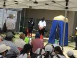 仮設トイレ設営運用ブースです。マンホールの蓋を開けるなど、実際の動きの確認をし...