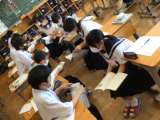 上の写真は、社会の授業です。江戸時代の文化について、まとめています。 中央の写真...