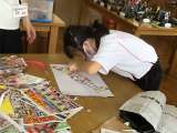 美術の授業の様子です。 ちぎり絵や水彩画の作品を制作してします。また、完成し...