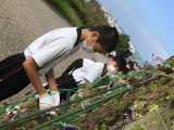 上の写真は、地域ボランティアの方といっしょに校内や学校周辺の清掃をしたあと、お...
