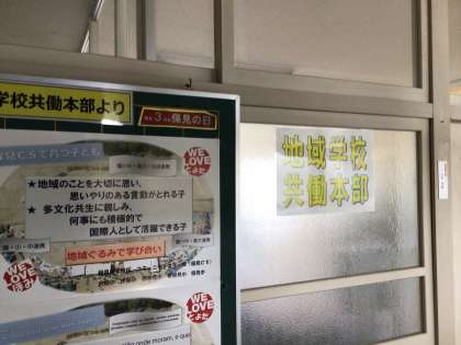 学校の中にある保健室、相談室、地域学校共働本部などを紹介します。