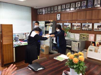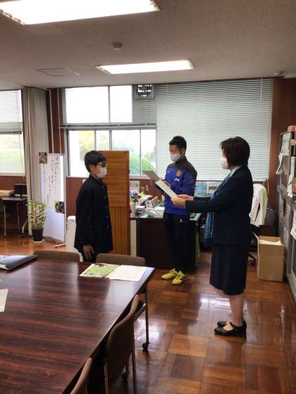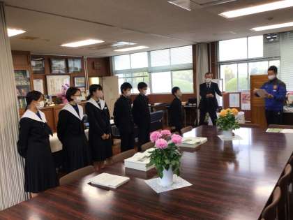 2年生の前期比 級長、代議員、書記の認証式を校長室で行いました。やる気に満ちています。