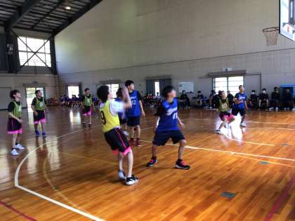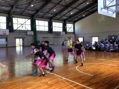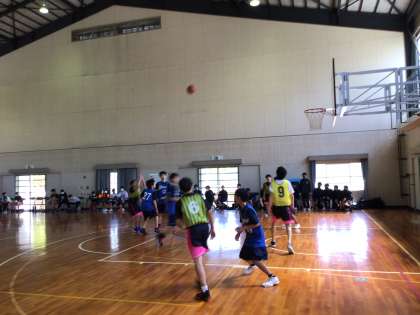 バスケット部男子が練習試合を行っています。