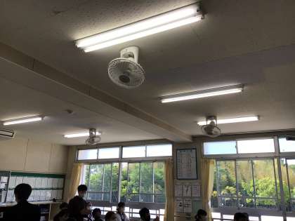 教室では、暑さ対策として扇風機とエアコンを使用します。