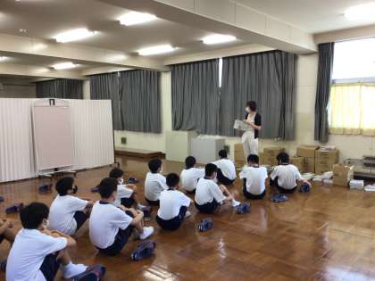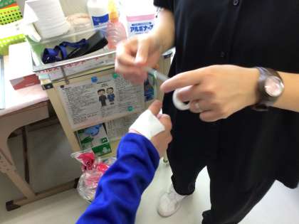保健室では、体調不良やケガの対応をしています。今日は、心電図検査です。