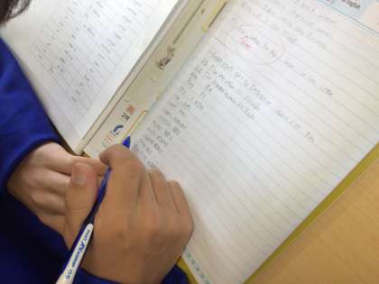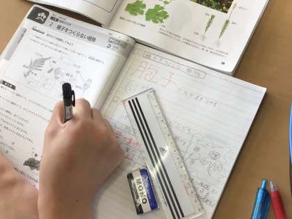 テスト週間に入り、学習内容の復習をしています。ドリルやテキスツは、提出する課題です。