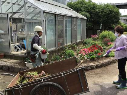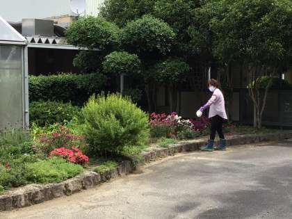 校内の花壇や草取り、落ち葉の処理をして美しい環境を整えてくださっています。