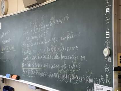 朝の会で、テスト勉強や自主学習のよいところを電子黒板で紹介しています。