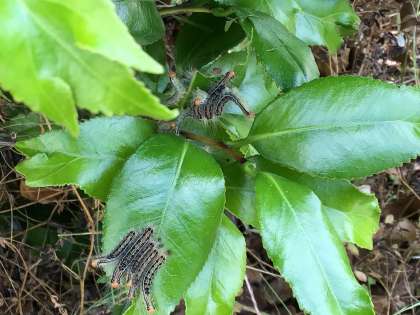 校内の木に、チャドクガがいました。生徒にも注意を呼びかけています。
