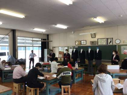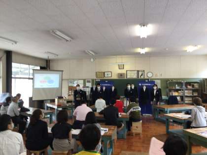 ポロシャツを導入したことに続いて、制服のブレザー化に向けて準備を進めています。業者によるプレゼンを行いました。PTAの役員さんにも来ていただきました。今後導入に向けて、小学校とも連携して準備を進めていきます。