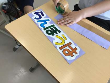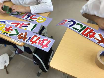 級訓と学級目標を作っています。完成した級訓は教室に掲示します。
