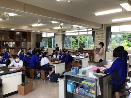 今日は、スタッフ会です。活動について話し合っています。保健スタッフは、愛メッセージ週間の取り組みについて準備をしています。広報スタッフは、放送の仕方を教えてもらっています。