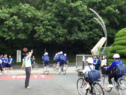 多くの生徒があいさつ運動をしています。