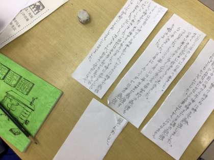 ことばの教室の生徒が、スピーチコンテストに応募する作文を考えています。