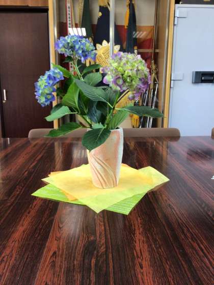 校内の紫陽花が一気に咲き始めました。校長室にも飾っています。