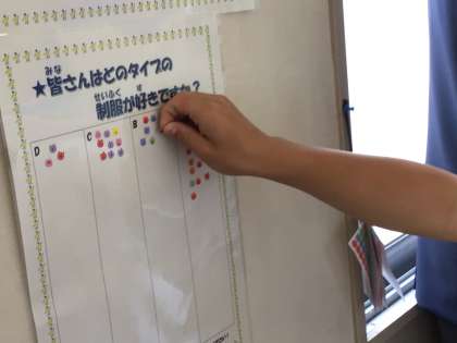 生徒たちは、廊下のブレザーを見て、投票しています。