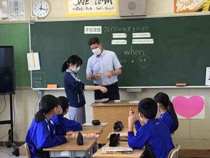 今日は、ALTの先生と一緒に楽しく授業しています。