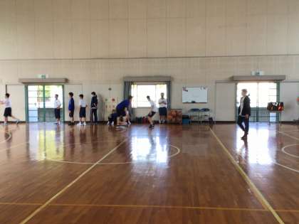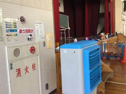 体育館にも熱中症レベルを掲示して活動しています。スポットクーラーも活用しています。