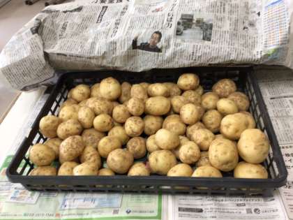 特別支援では、少人数で学習しています。先日、授業で収穫したじゃがいもです。袋詰めして持ち帰ります。