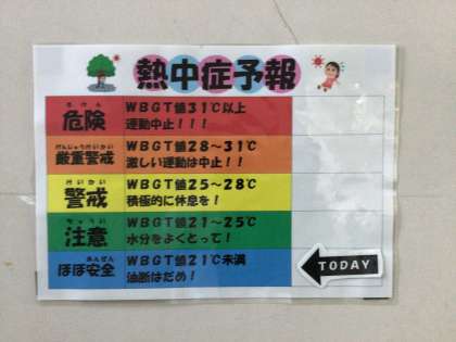 今日は、気温が落ち着いています。熱中症レベルは低いですが、湿度が高いので注意しています。