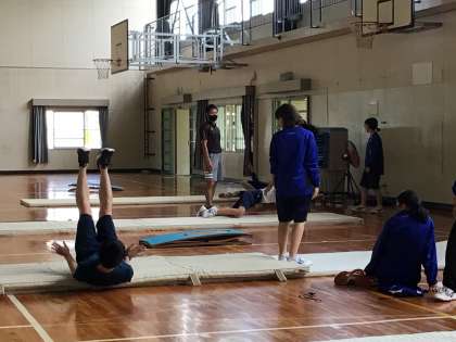 教師が手本を示したり、助言したりしています。