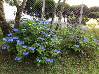 通学路の紫陽花の花が美しく咲いています。