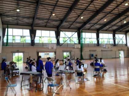 吹奏楽部は、最後の発表に向けて体育館で練習しています。外部指導の方が来ています。